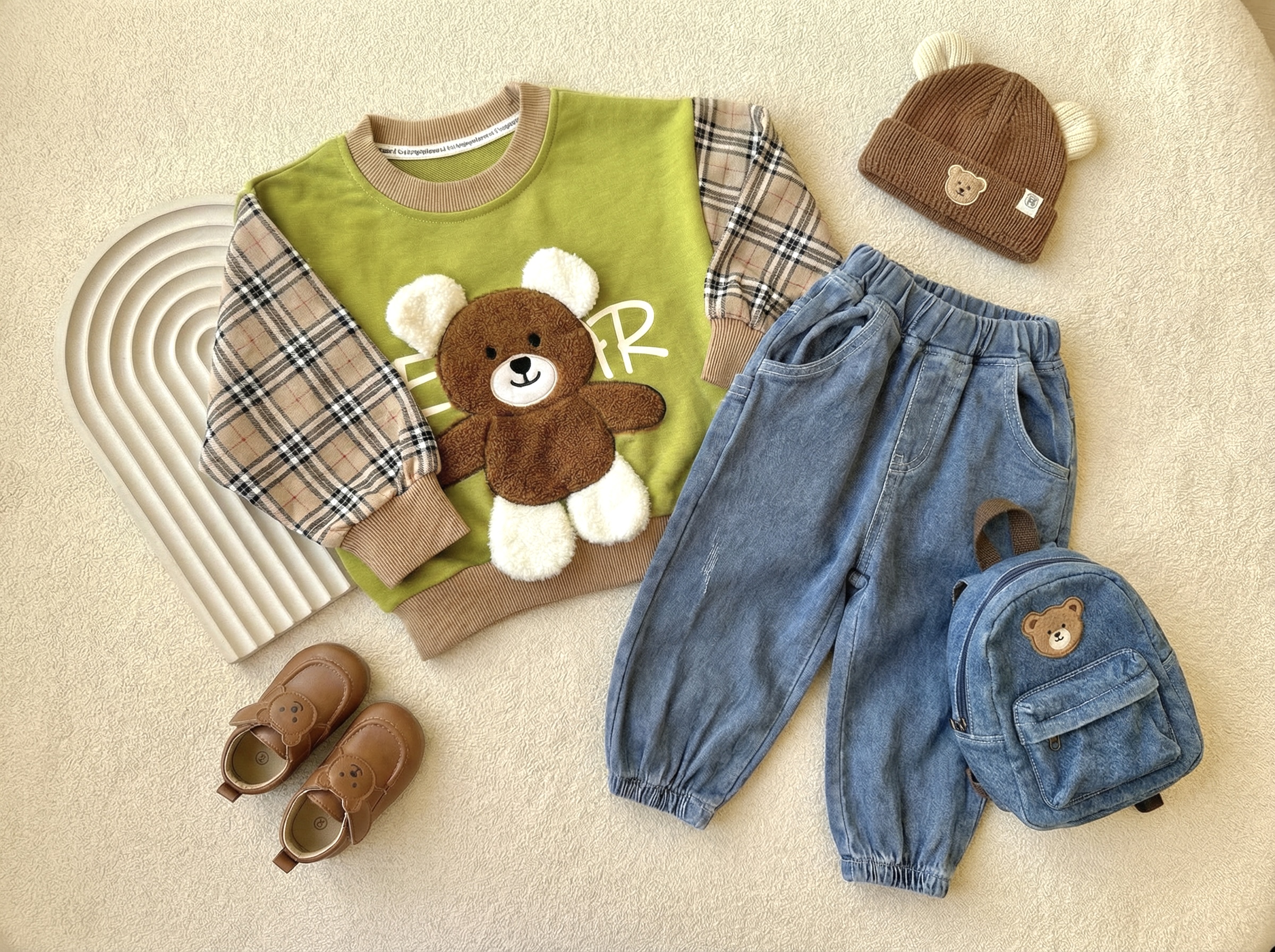 ست دو تیکه پسرانه طرح خرس برجسته مناسب ۲ تا ۶ سال