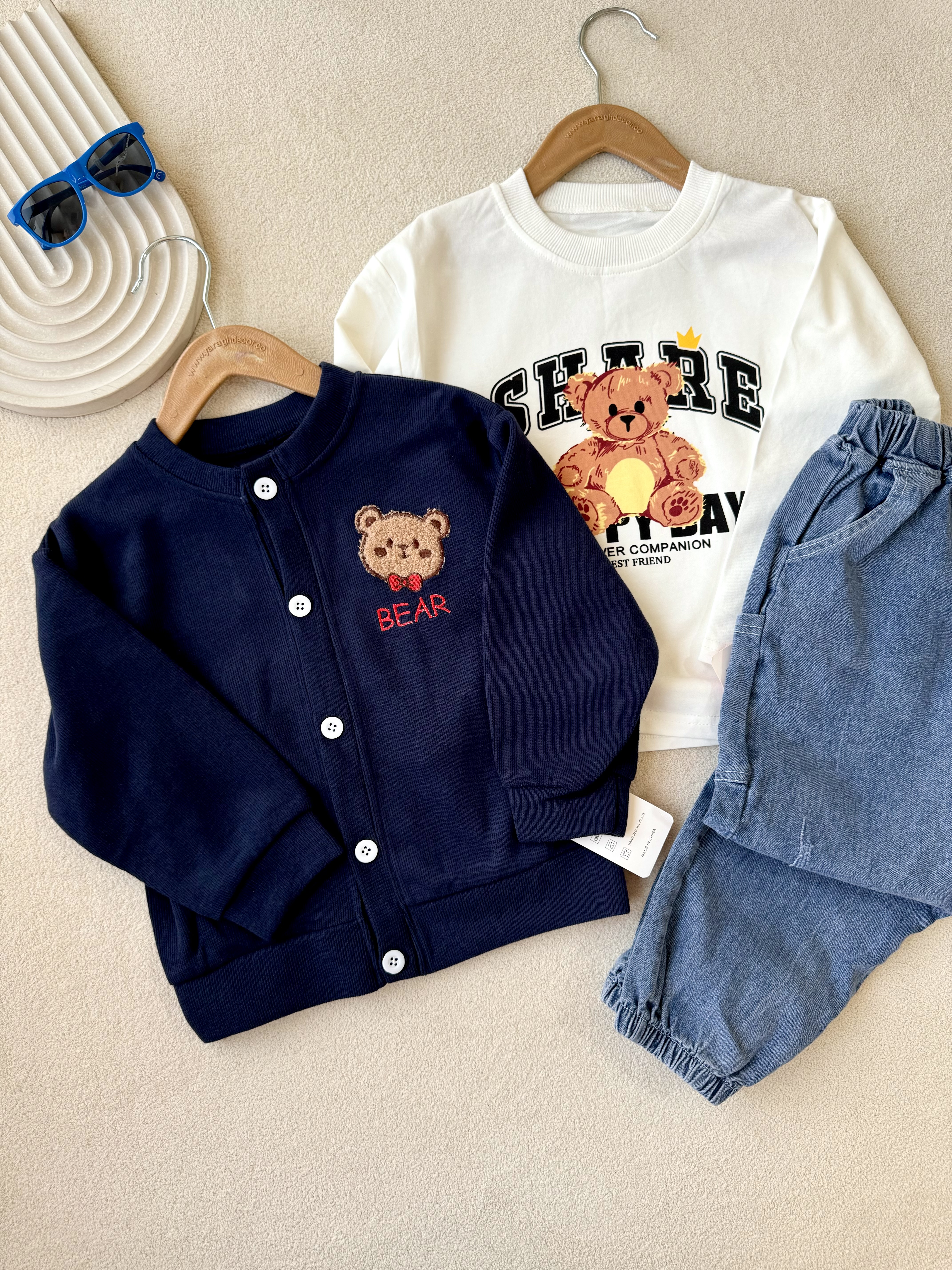 ست سه تیکه با ژاکت سرمه ای پسرانه وارداتی مناسب 1.5 تا 5 سال