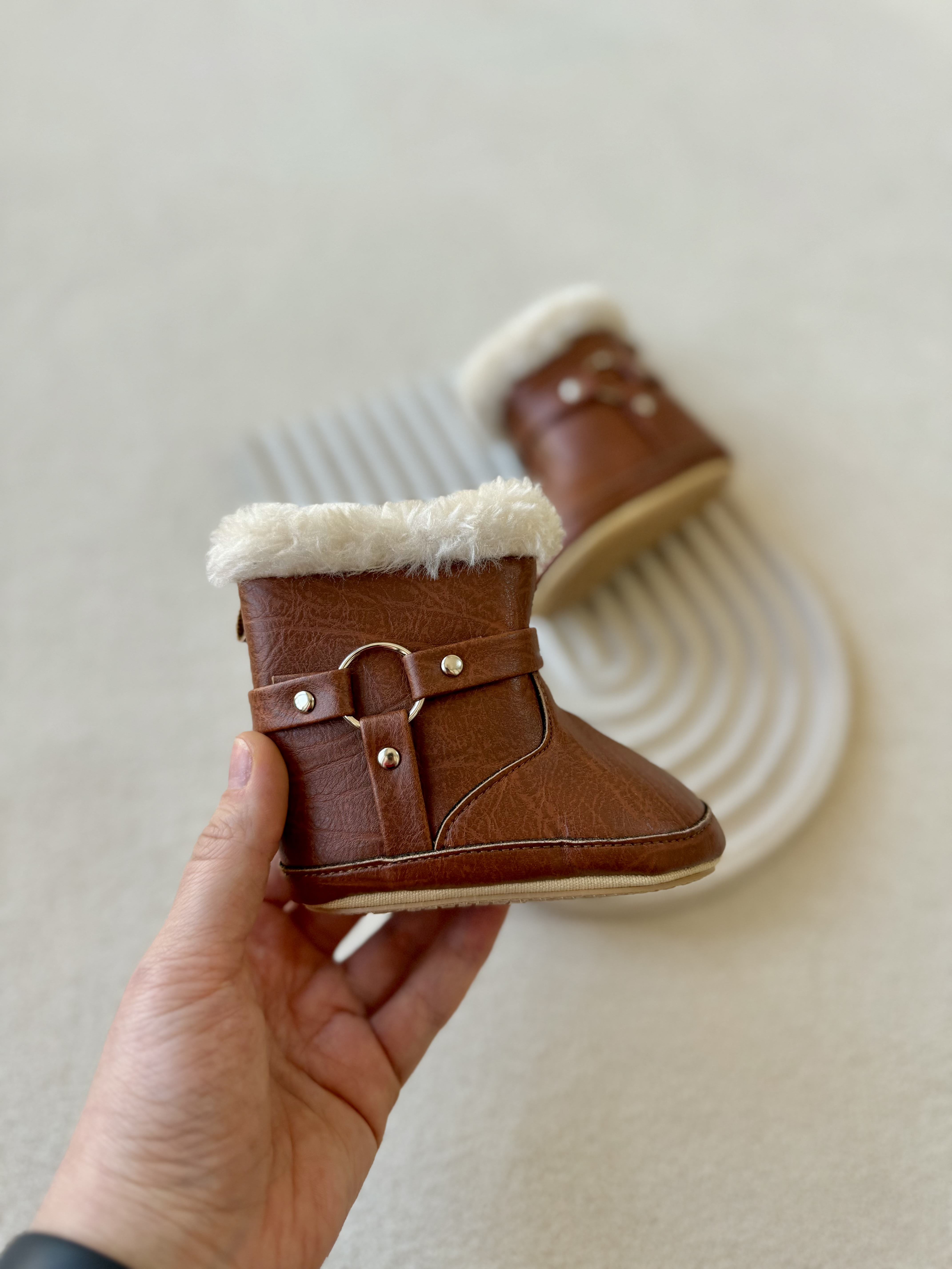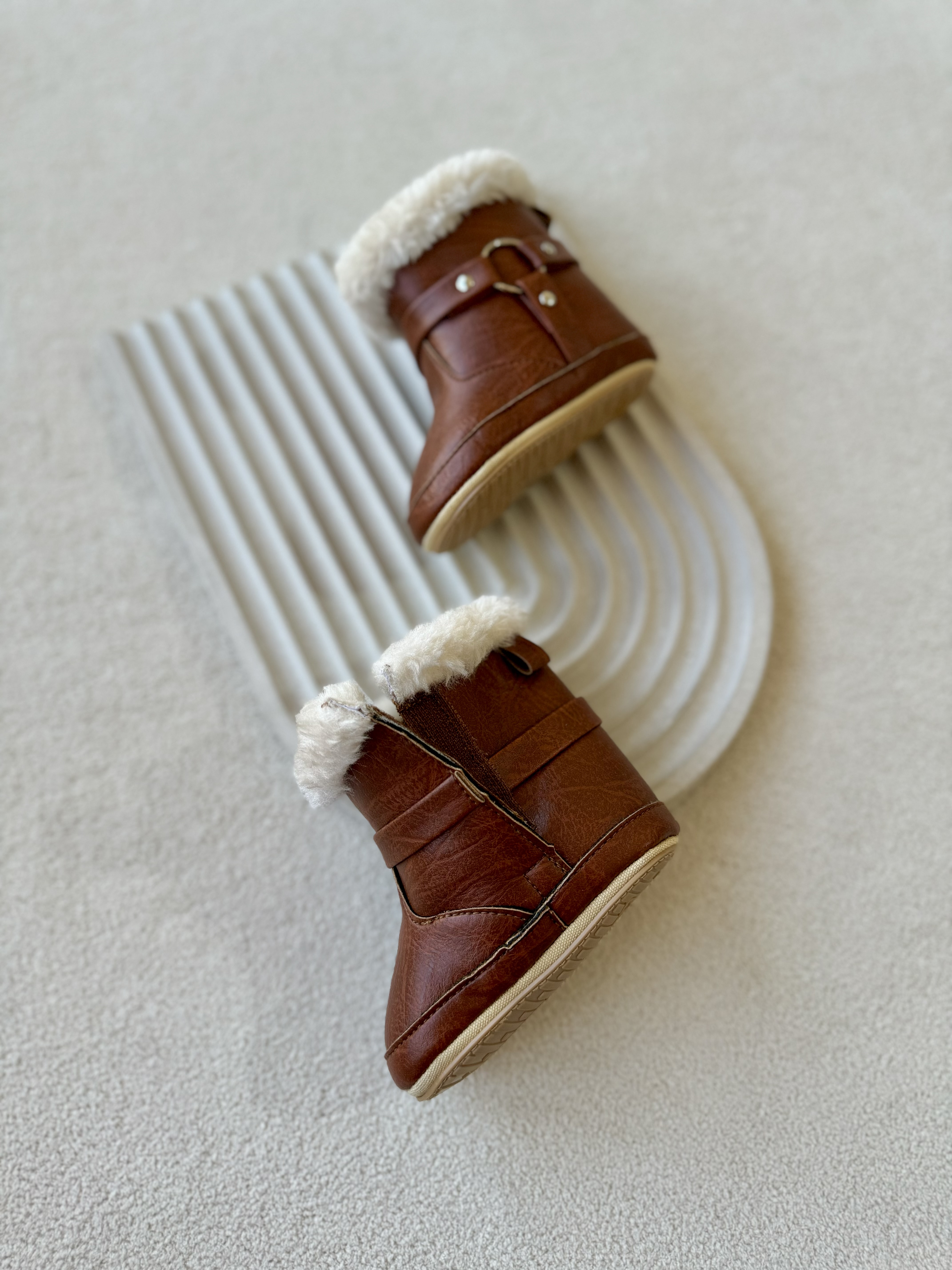 بوت نوزادی چرم خزدار واردتی (بغل چسب دار) اورجینال مناسب 0 تا 15 ماه