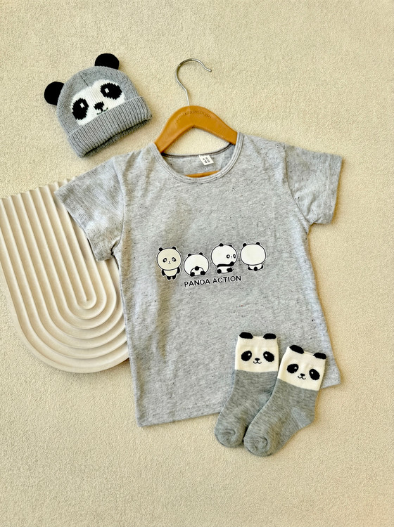 تیشرت وارداتی بچگانه نخی طرح پاندا مناسب ۲ تا ۴ سال