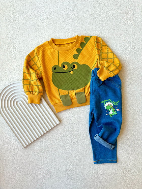 ست بلوز شلوار وارداتی طرح تمساح مناسب ۱ تا ۵ سال