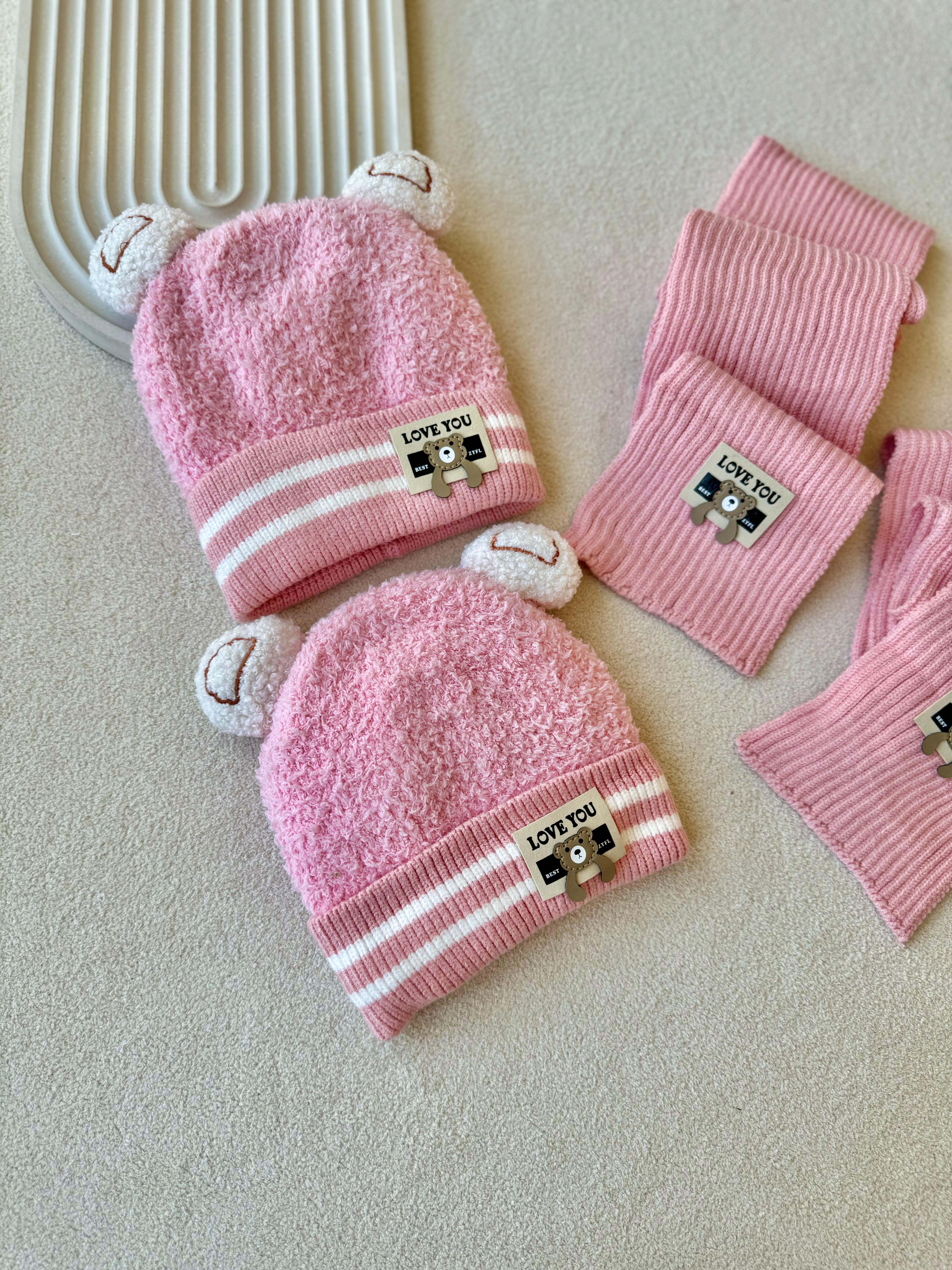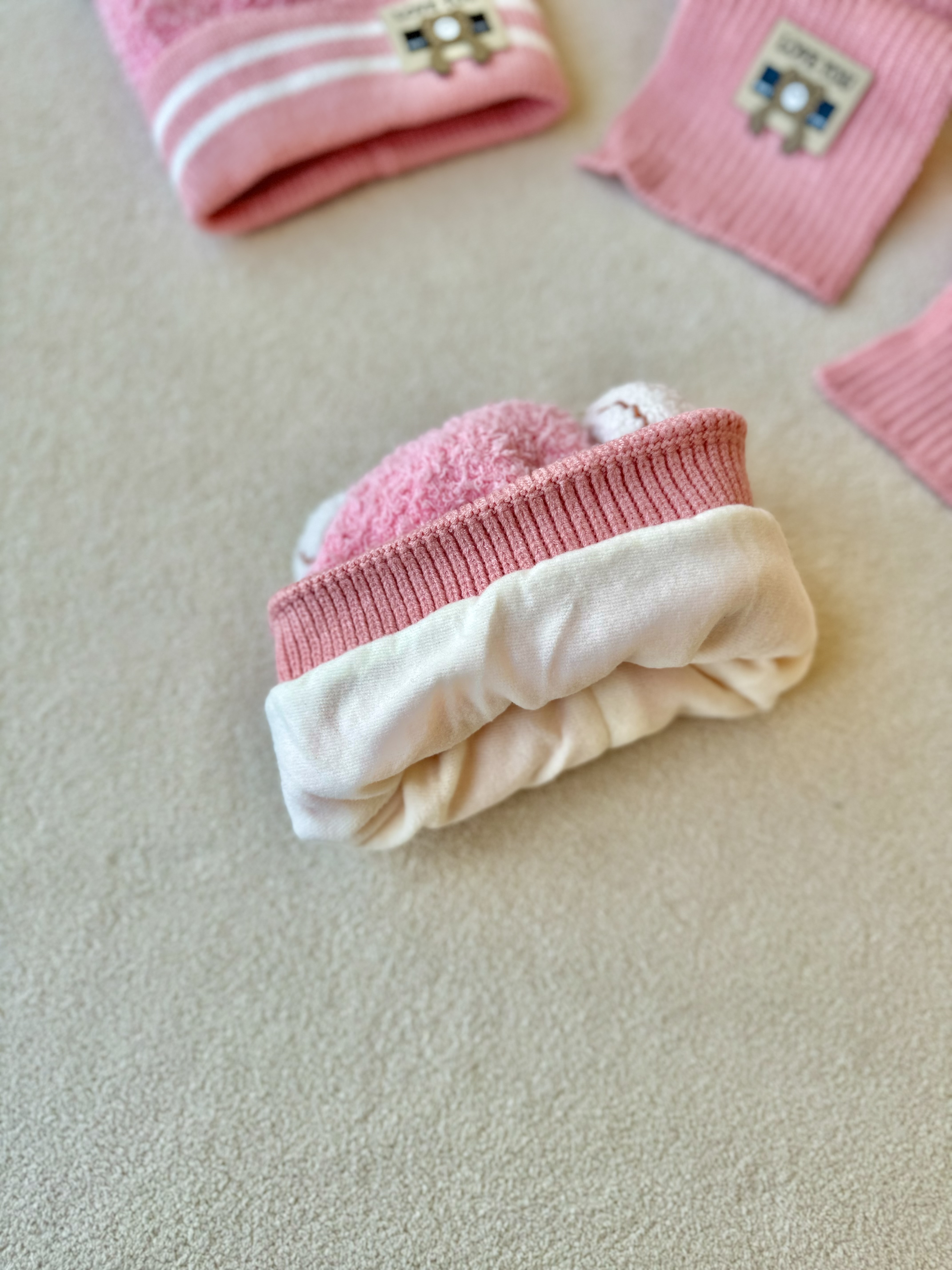 شال و کلاه بچگانه وارداتی داخل پلار تدی صورتی