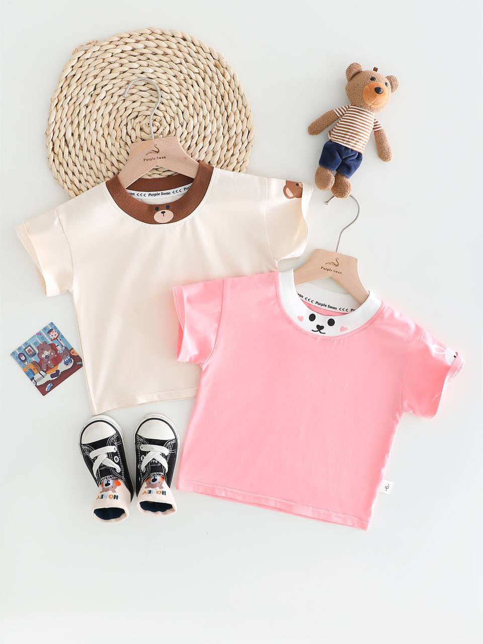 ست دوتیکه بیلر و تیشرت بچگانه دخترانه طرح خرگوش اورجینال و کیفیت عالی مناسب ٩ ماه تا ٥ سال