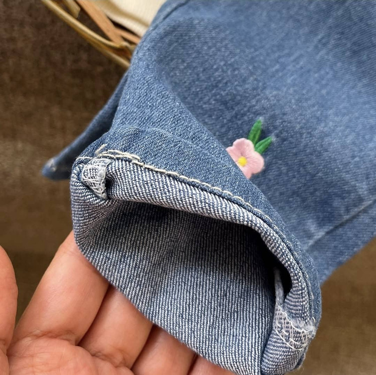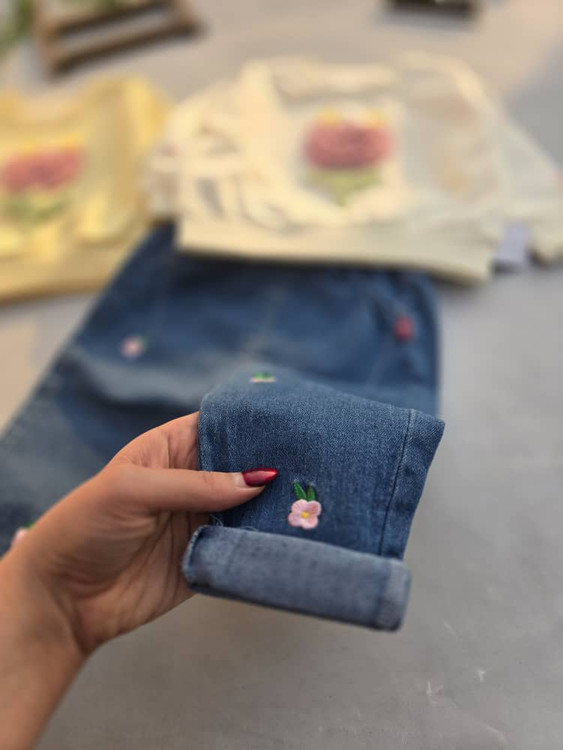 جنس بلوز دورس با گلدوزی برجسته و شلوار جین گلدوزی شده