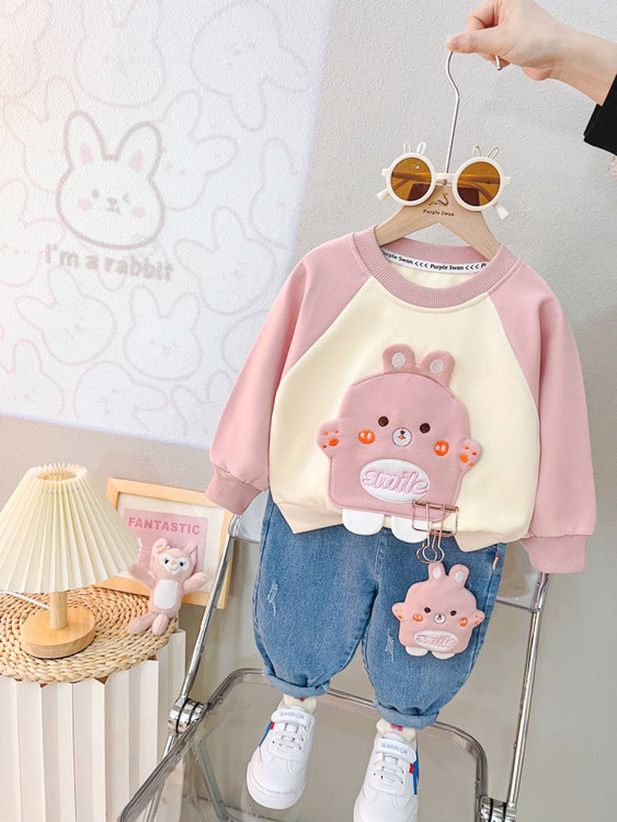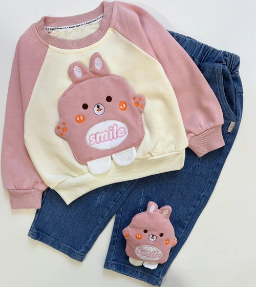 ست سه تیکه دورس وشلوار و عروسک وارداتی مناسب ۱ تا۵ سال