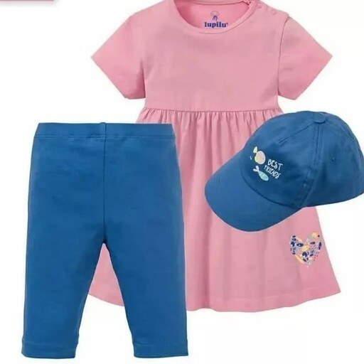 راهنماي سايز: (تا سه سال هم اندازه ميشه) عرض پيراهن:٢٨ سانت(قسمت زير بغل) قد پيراهن:٤٥ سانت قد شلوارك:٣١ سانت كمر شلوار:تا ٣٠ سانت كش مياد